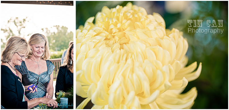 Above ground, the sun was falling towards the mountaintops and Lauren's aunts and soon-to-be sister-in-law created some beautiful flower arrangements for the reception tables. There must be something in that fresh mountain air because no one was worried or frazzled and everything was completed just in time for the ceremony (where Lauren surprised everyone by making a grand entrance through the vineyard to "The Imperial March" from Star Wars followed by the classic wedding march)!